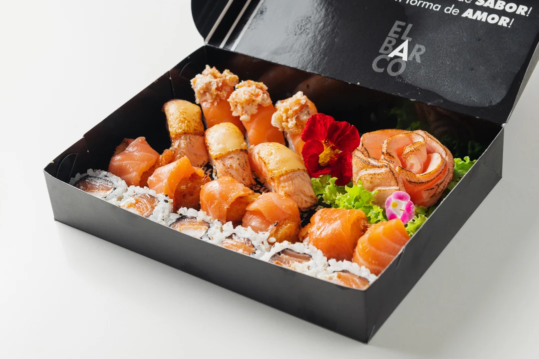 40 - 6 Uramaki variados, 6 Hossomaki variados, 6 Gunkan Filadélfia, 10 Niguiri variados e 12 Sashimi