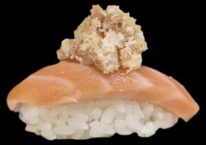 O niguiri de atum é uma pequena joia da culinária japonesa, simples e elegante. Ele é composto por uma base de arroz temperado e macio, levemente adocicado e moldado à mão, sobre o qual repousa uma lamina delicada de atum fresco