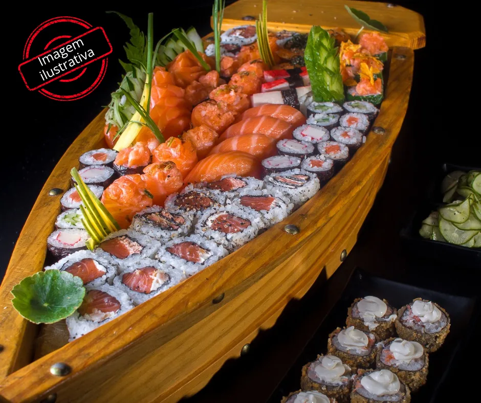 El Barco 80 peças 10 und Sashimi 15 und Uramaki 15 und Hossomaki's 10 und niguri's 05 und Gunkan's 05 und Acelgamaki 10 und Gunkinhas 10 und hot's filadelfia 02 und Salada Sunomono